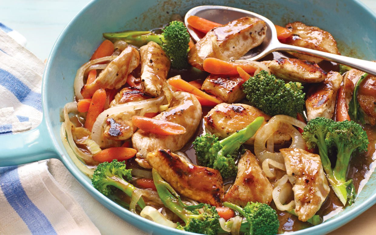 This healthy and delicious chicken stir fry takes only minutes to make. Instead of chopping the vegetables yourself, this recipe calls for pre-chopped ingredients found in the produce section of your grocery store.