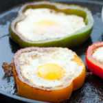 - Crack an egg into each bell pepper ring. Lower heat to medium-low. Cook until whites are set, 5-10 minutes.